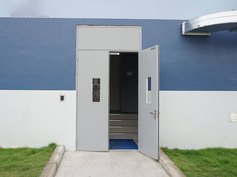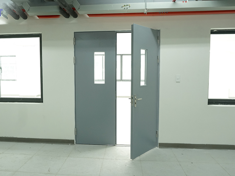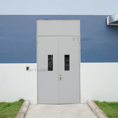 Cửa thép công nghiệp 2 cánh có ô kính – Khóa tay gạt